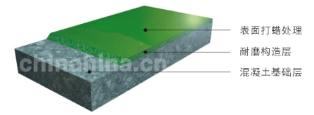 在普通混凝土浇注的初凝阶段,将地平硬化耐磨材料均匀撒布在混凝土表面,经专业机械设备按照标准程序施工,从而使其与混凝土基层形成一个整体,且具有高密度性、和经着色的高性能硬化耐磨损地面,当地坪硬化耐磨损材料使用于工业厂房等地面时,能加倍提高地面的耐磨损和冲击性。